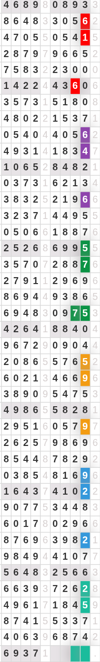 | Rumus Angka Mati berdasarkan kepala harian | 07 08 09 10 19 20 21 27 28 31 38 39 40 41 42 43 48 49 50 51 52 53 54 59 60 61 62 63 65 71 73 74 76 85 86 87 96 97 98 |