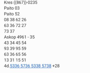 Prediksi Ini Berubah secara otomatis sesuai hari dan result pasaran masing-masing. Untuk melihat prediksi sebelumnya klik tombol nomor hitam diatas