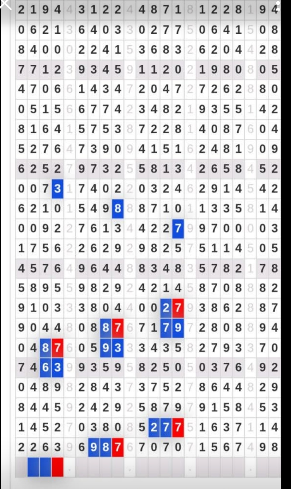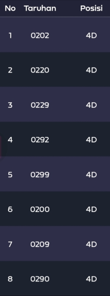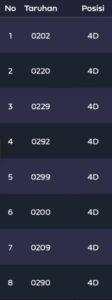| Rumus Angka Mati berdasarkan kepala harian | 04 05 06 07 08 09 10 15 16 17 18 19 21 26 27 28 29 30 32 37 39 41 42 43 52 53 54 63 64 65 75 76 83 84 86 87 94 95 97 |