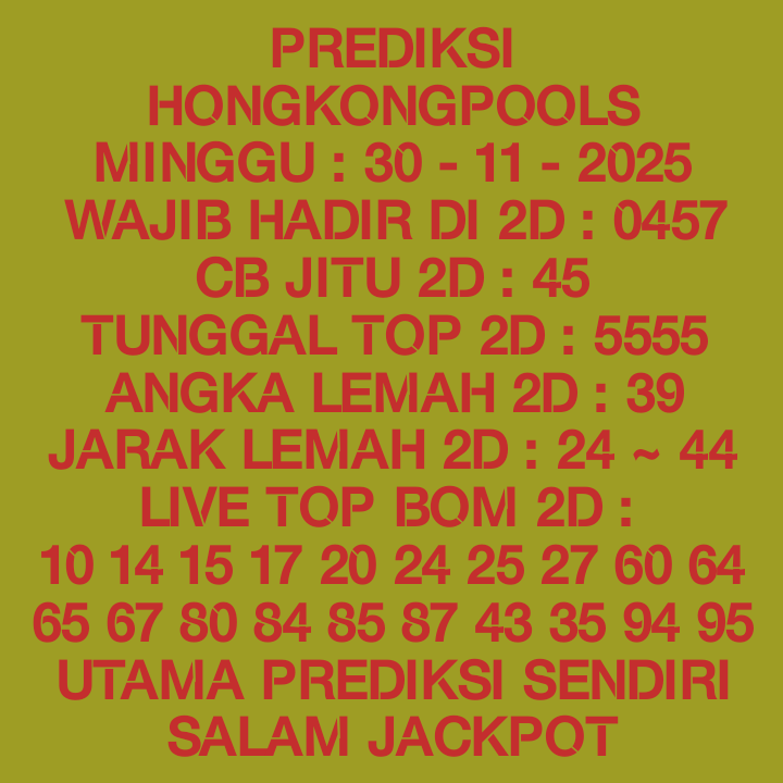 Selamat Bergabung kembali bersama angkanet dalam room Prediksi HK. Untuk kenyamanan dalam berprediksi, kami melarang adanya posting nomor WA, Web atau FB. Angkanet juga tidak pernah menjual prediksi, software, atau aplikasi togel lainnya. Berprediksilah secara damai dan elegan. Terima kasih telah menjadi pengunjung setia angkanet