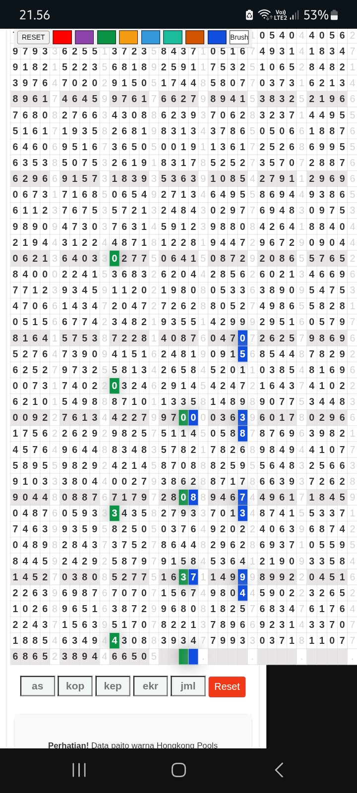 | Rumus Angka Mati berdasarkan kepala harian | 04 05 06 07 09 10 15 17 18 20 21 29 30 31 32 41 42 43 53 54 61 62 64 65 72 73 75 82 83 84 85 86 87 93 94 95 96 97 98 |
