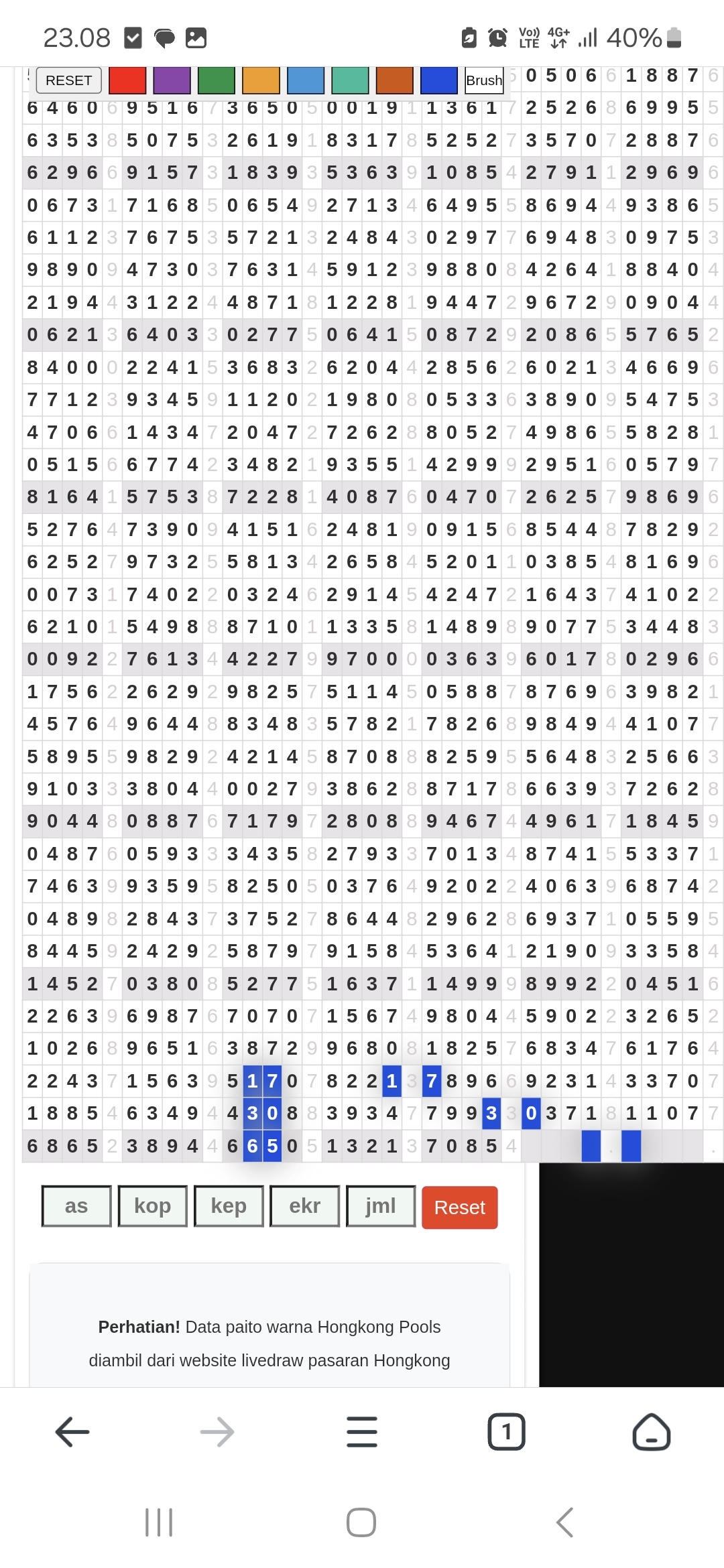 | Rumus Angka Mati berdasarkan kepala harian | 07 08 09 10 18 19 20 21 31 32 38 39 40 42 49 50 51 52 53 54 59 60 61 62 63 64 65 71 72 73 74 76 82 84 85 87 96 97 98 |