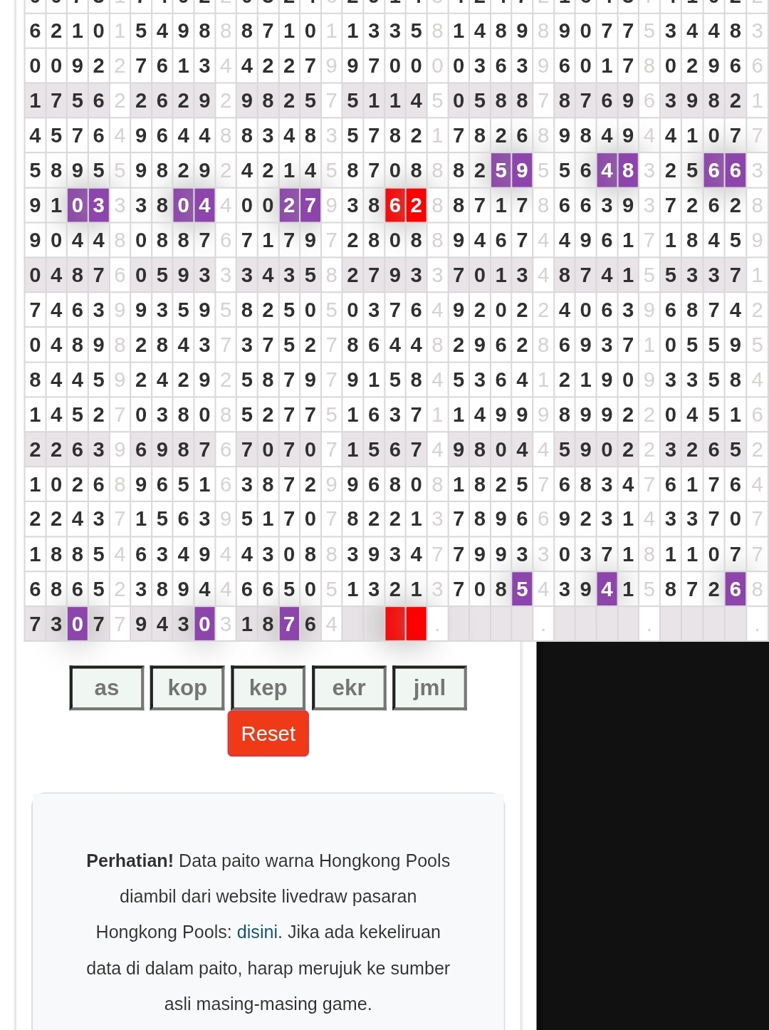 | Rumus Angka Mati berdasarkan kepala harian | 07 08 09 10 18 19 20 21 29 31 32 40 42 43 49 50 51 53 60 61 62 63 64 65 71 72 73 74 75 76 82 83 84 85 87 93 95 96 98 |