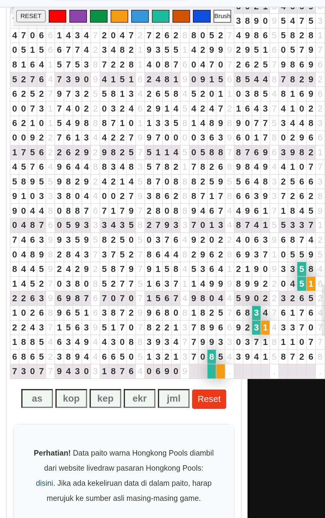 | Rumus Angka Mati berdasarkan kepala harian | 07 08 09 10 18 19 20 21 31 32 38 39 40 42 49 50 51 52 53 54 59 60 61 62 63 64 65 71 72 73 74 76 82 84 85 87 96 97 98 |