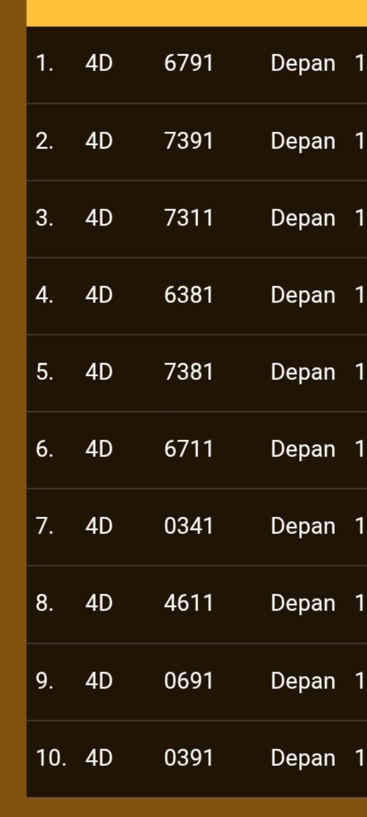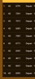 | Rumus Angka Mati berdasarkan kepala harian | 07 08 09 10 18 19 20 21 29 31 32 40 42 43 49 50 51 53 60 61 62 63 64 65 71 72 73 74 75 76 82 83 84 85 87 93 95 96 98 |