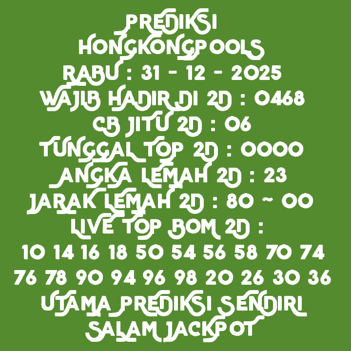 Prediksi HK Rabu, 14-01-2026 Merupakan Prediksi Otomatis yang menggabungkan Metode Kalender Togel Dengan LN Generator yang akurasi prediksinya sudah kita ketahui bersama. Jadi harap Maklum Jika kadang meleset Prediksi HK kita. Jadikan ini sebagai perbandingan saja dan tetap Utamakan karya sendiri