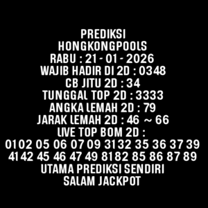 Prediksi HK Senin, 12-01-2026 Merupakan Prediksi Otomatis yang menggabungkan Metode Kalender Togel Dengan LN Generator yang akurasi prediksinya sudah kita ketahui bersama. Jadi harap Maklum Jika kadang meleset Prediksi HK kita. Jadikan ini sebagai perbandingan saja dan tetap Utamakan karya sendiri
