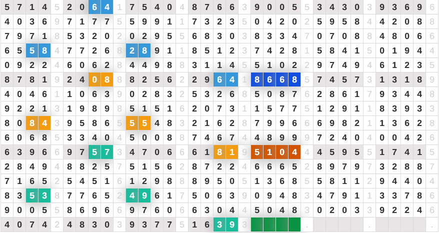 | Rumus Angka Mati berdasarkan kepala harian | 07 08 09 10 18 19 20 21 31 32 38 39 40 42 49 50 51 52 53 54 59 60 61 62 63 64 65 71 72 73 74 76 82 84 85 87 96 97 98 |