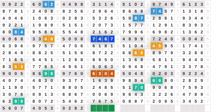 | Rumus Angka Mati berdasarkan kepala harian | 04 06 07 09 10 18 19 20 21 29 30 31 32 42 43 50 51 53 54 61 62 64 71 72 73 74 75 76 82 83 84 85 86 87 93 94 95 96 98 |