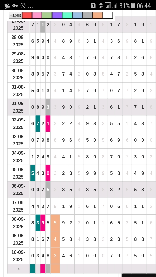 | Rumus Kontrol 4 berdasarkan kepala harian | 1456890 2345789 |