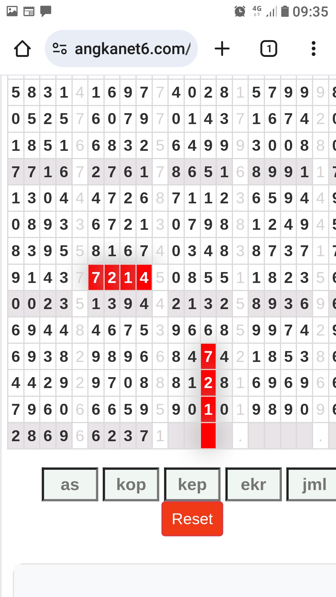 | Rumus Angka Mati berdasarkan kepala harian | 08 09 10 16 17 19 20 27 28 30 31 32 37 38 39 40 41 42 43 48 49 50 51 52 54 59 60 62 63 65 74 75 76 85 86 87 96 97 98 |