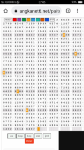 | Rumus Angka Mati berdasarkan kepala harian | 04 06 07 09 10 18 19 20 21 29 30 31 32 42 43 50 51 53 54 61 62 64 71 72 73 74 75 76 82 83 84 85 86 87 93 94 95 96 98 |