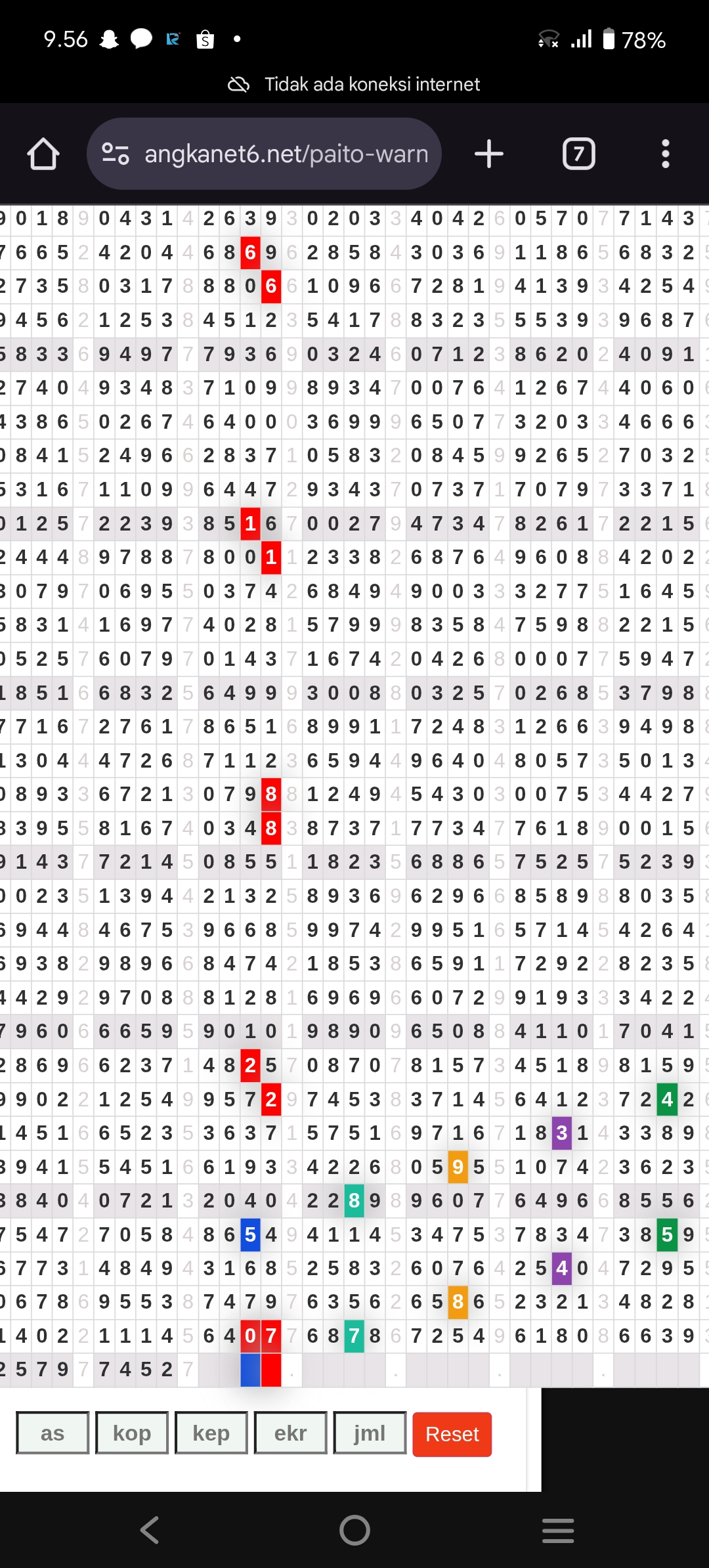 | Rumus Angka Mati berdasarkan kepala harian | 04 05 06 07 09 10 15 17 18 20 21 29 30 31 32 41 42 43 53 54 61 62 64 65 72 73 75 82 83 84 85 86 87 93 94 95 96 97 98 |