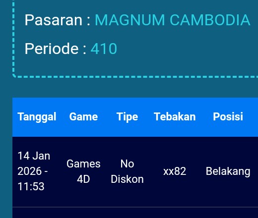 Selamat Bergabung kembali bersama angkanet dalam room Prediksi Magnum Cambodia. Untuk kenyamanan dalam berprediksi, kami melarang adanya posting nomor WA, Web atau FB. Angkanet juga tidak pernah menjual prediksi, software, atau aplikasi togel lainnya. Berprediksilah secara damai dan elegan. Terima kasih telah menjadi pengunjung setia angkanet