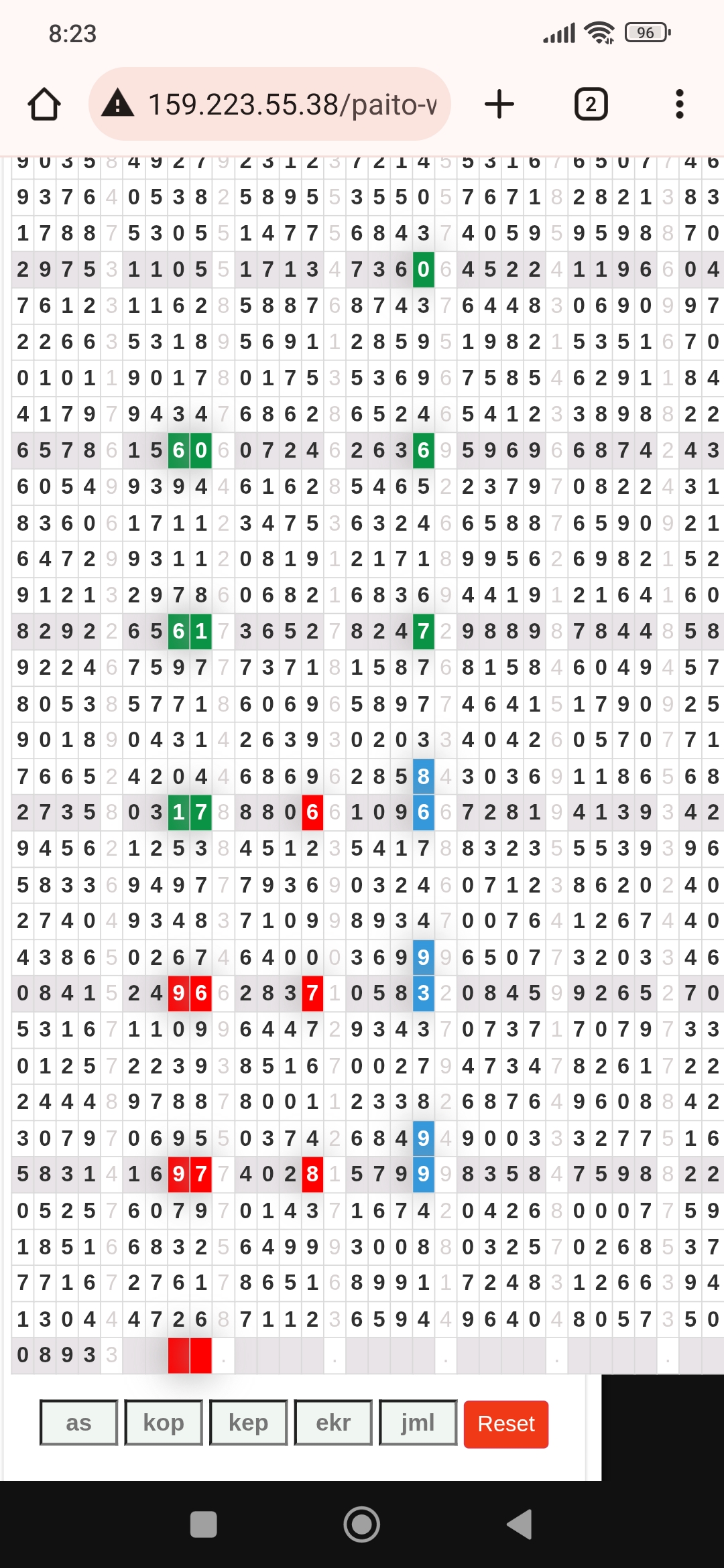| Rumus Angka Mati berdasarkan kepala harian | 04 05 06 07 09 10 15 17 18 20 21 29 30 31 32 41 42 43 53 54 61 62 64 65 72 73 75 82 83 84 85 86 87 93 94 95 96 97 98 |