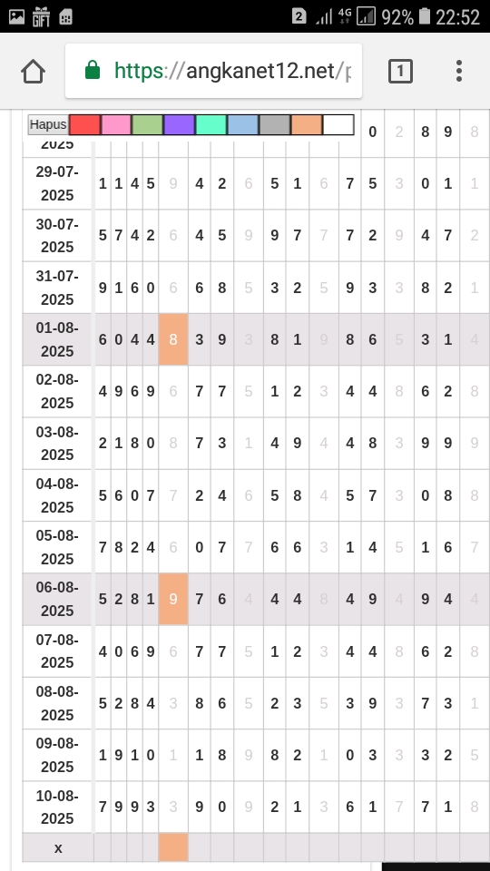 | Rumus Angka Mati berdasarkan kepala harian | 04 05 06 07 08 09 10 15 16 17 18 21 26 28 29 30 31 32 41 42 43 52 53 54 64 65 72 73 75 76 83 84 86 93 94 95 96 97 98 |