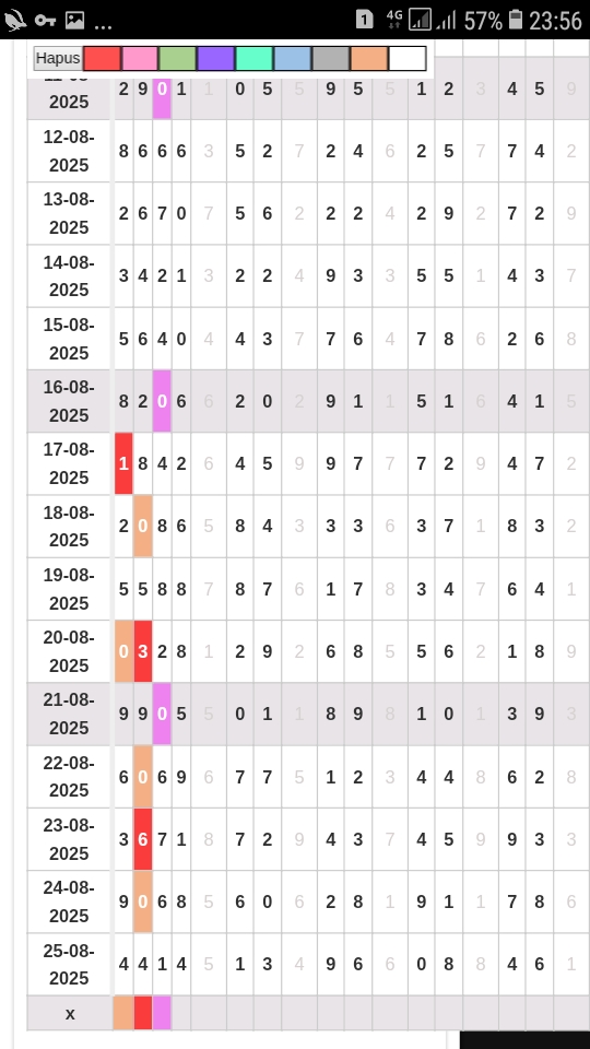 | Rumus Angka Mati berdasarkan kepala harian | 07 08 09 10 19 20 21 27 28 31 38 39 40 41 42 43 48 49 50 51 52 53 54 59 60 61 62 63 65 71 73 74 76 85 86 87 96 97 98 |