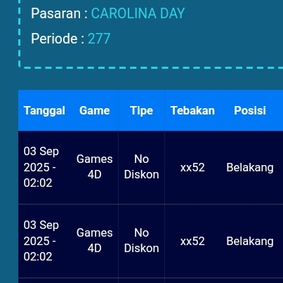 Selamat Bergabung kembali bersama angkanet dalam room Prediksi North Carolina Day. Untuk kenyamanan dalam berprediksi, kami melarang adanya posting nomor WA, Web atau FB. Angkanet juga tidak pernah menjual prediksi, software, atau aplikasi togel lainnya. Berprediksilah secara damai dan elegan. Terima kasih telah menjadi pengunjung setia angkanet