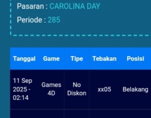 Prediksi North Carolina Day Sabtu, 17-01-2026 Merupakan Prediksi Otomatis yang menggabungkan Metode Kalender Togel Dengan LN Generator yang akurasi prediksinya sudah kita ketahui bersama. Jadi harap Maklum Jika kadang meleset Prediksi North Carolina Day kita. Jadikan ini sebagai perbandingan saja dan tetap Utamakan karya sendiri