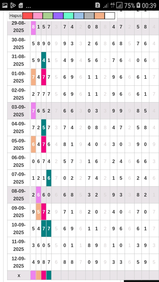 | Rumus Angka Mati berdasarkan kepala harian | 05 06 08 10 15 16 17 18 19 20 21 26 27 28 29 30 32 37 38 39 40 41 43 48 52 53 54 63 64 65 74 75 76 86 87 94 95 97 98 |