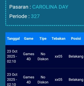 Prediksi North Carolina Day Kamis, 15-01-2026 Merupakan Prediksi Otomatis yang menggabungkan Metode Kalender Togel Dengan LN Generator yang akurasi prediksinya sudah kita ketahui bersama. Jadi harap Maklum Jika kadang meleset Prediksi North Carolina Day kita. Jadikan ini sebagai perbandingan saja dan tetap Utamakan karya sendiri
