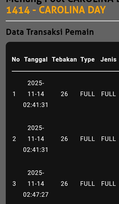 Prediksi North Carolina Day Rabu, 24-12-2025 Merupakan Prediksi Otomatis yang menggabungkan Metode Kalender Togel Dengan LN Generator yang akurasi prediksinya sudah kita ketahui bersama. Jadi harap Maklum Jika kadang meleset Prediksi North Carolina Day kita. Jadikan ini sebagai perbandingan saja dan tetap Utamakan karya sendiri