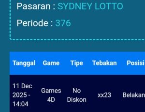 Sydney Lotto, Jum’at – 12 Desember 2025