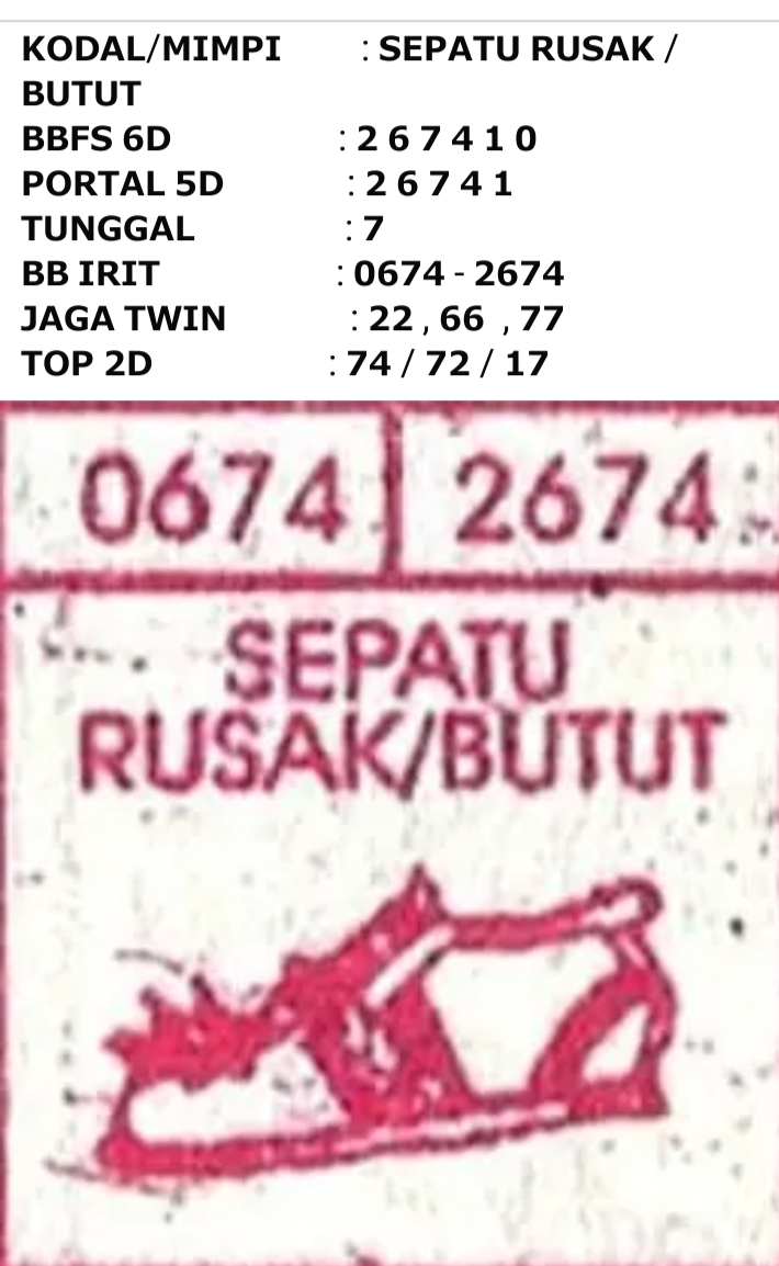 | Rumus Angka Mati berdasarkan kepala harian | 04 05 06 07 09 10 15 17 18 20 21 29 30 31 32 41 42 43 53 54 61 62 64 65 72 73 75 82 83 84 85 86 87 93 94 95 96 97 98 |