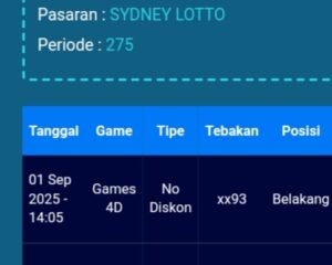 Prediksi Sydney Lotto Jumat, 16-01-2026 Merupakan Prediksi Otomatis yang menggabungkan Metode Kalender Togel Dengan LN Generator yang akurasi prediksinya sudah kita ketahui bersama. Jadi harap Maklum Jika kadang meleset Prediksi Sydney Lotto kita. Jadikan ini sebagai perbandingan saja dan tetap Utamakan karya sendiri
