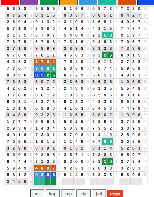 | Rumus Angka Mati berdasarkan kepala harian | 05 06 08 10 15 16 17 18 19 20 21 26 27 28 29 30 32 37 38 39 40 41 43 48 52 53 54 63 64 65 74 75 76 86 87 94 95 97 98 |