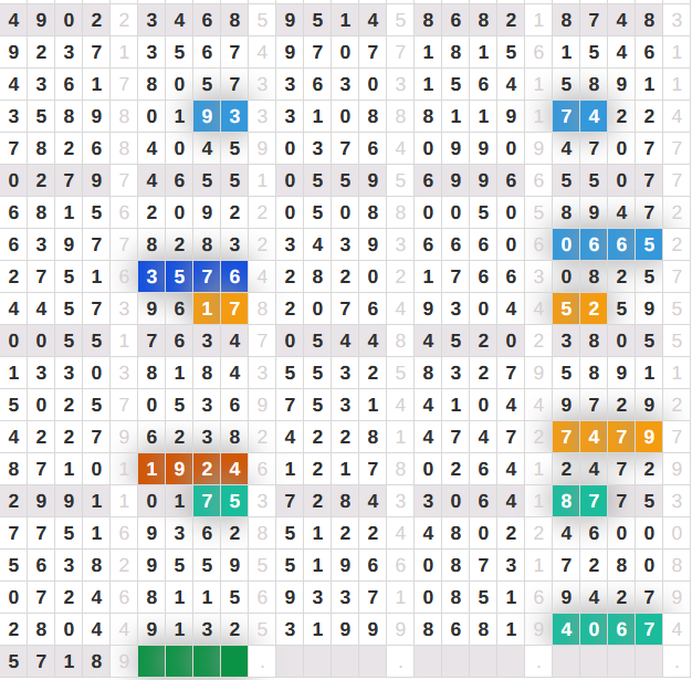 | Rumus Angka Mati berdasarkan kepala harian | 07 08 09 10 18 19 20 21 31 32 38 39 40 42 49 50 51 52 53 54 59 60 61 62 63 64 65 71 72 73 74 76 82 84 85 87 96 97 98 |