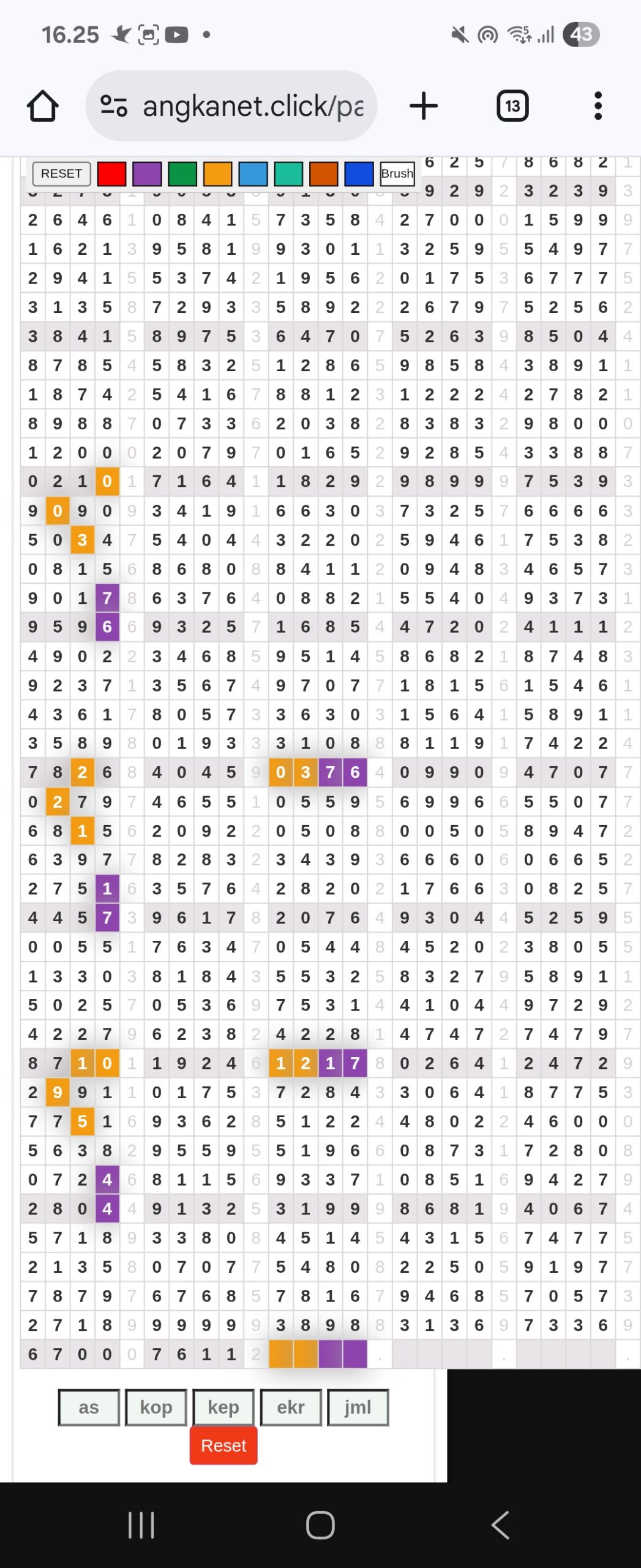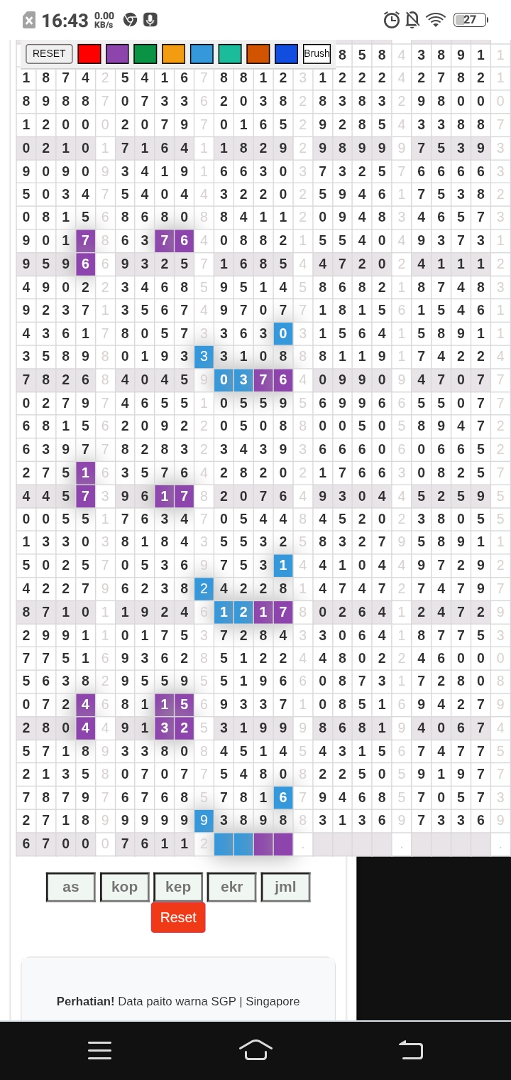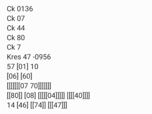 | Rumus Angka Mati berdasarkan kepala harian | 07 08 09 10 19 20 21 27 28 31 38 39 40 41 42 43 48 49 50 51 52 53 54 59 60 61 62 63 65 71 73 74 76 85 86 87 96 97 98 |