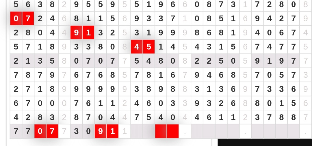 | Rumus Angka Mati berdasarkan kepala harian | 07 08 09 10 18 19 20 21 31 32 38 39 40 42 49 50 51 52 53 54 59 60 61 62 63 64 65 71 72 73 74 76 82 84 85 87 96 97 98 |