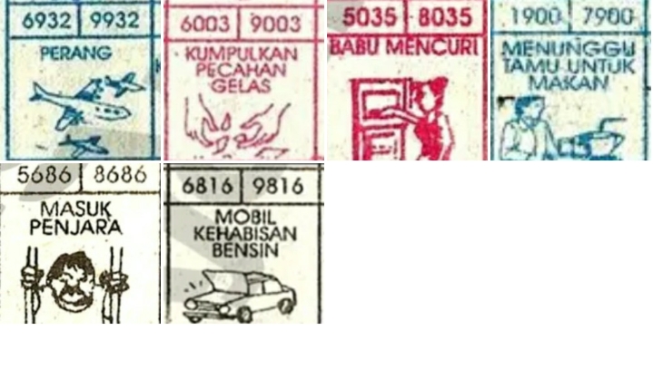 | Rumus Angka Mati berdasarkan kepala harian | 04 05 06 07 08 09 10 15 16 17 18 19 21 26 27 28 29 30 32 37 39 41 42 43 52 53 54 63 64 65 75 76 83 84 86 87 94 95 97 |