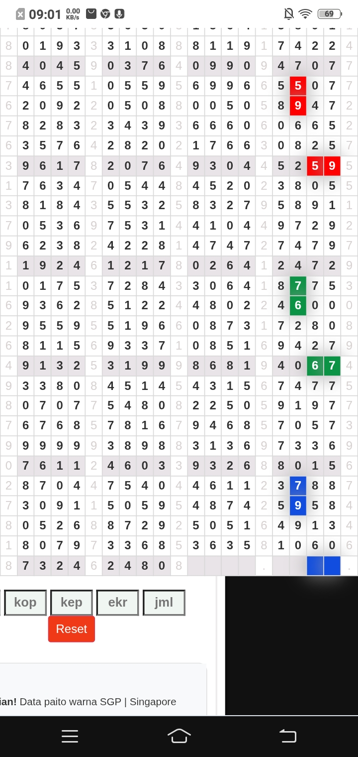 | Rumus Angka Mati berdasarkan kepala harian | 07 08 09 10 19 20 21 27 28 31 38 39 40 41 42 43 48 49 50 51 52 53 54 59 60 61 62 63 65 71 73 74 76 85 86 87 96 97 98 |