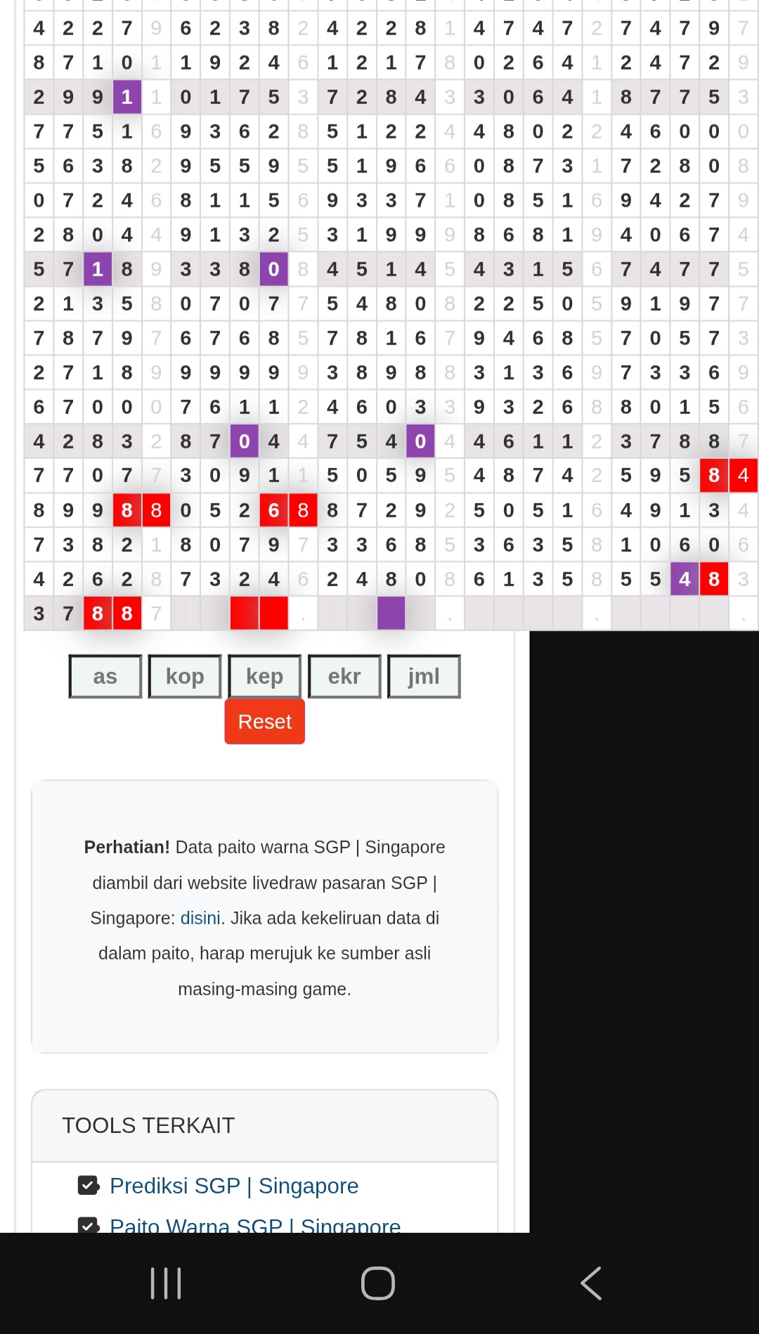 | Rumus Angka Mati berdasarkan kepala harian | 07 08 09 10 19 20 21 27 28 31 38 39 40 41 42 43 48 49 50 51 52 53 54 59 60 61 62 63 65 71 73 74 76 85 86 87 96 97 98 |