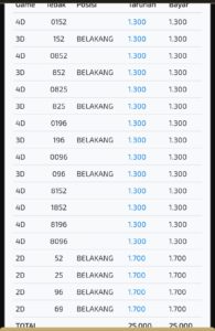 | Rumus Kontrol 2 berdasarkan Ekor harian | 5798246 5678902 3579286 |