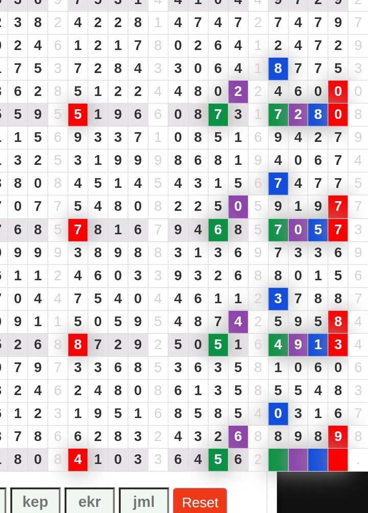 | Rumus Angka Mati berdasarkan kepala harian | 05 06 08 10 15 16 17 18 19 20 21 26 27 28 29 30 32 37 38 39 40 41 43 48 52 53 54 63 64 65 74 75 76 86 87 94 95 97 98 |
