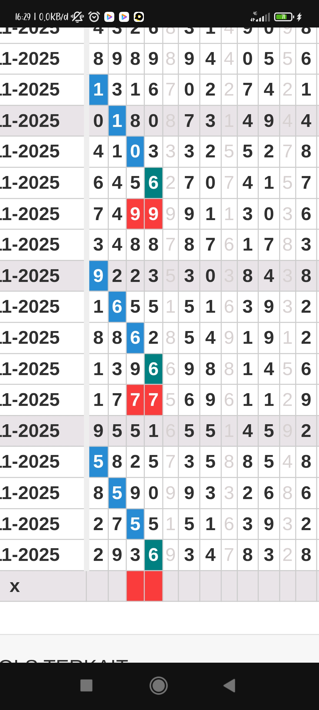 | Rumus Kontrol 4 berdasarkan kepala harian | 1456890 2345789 |