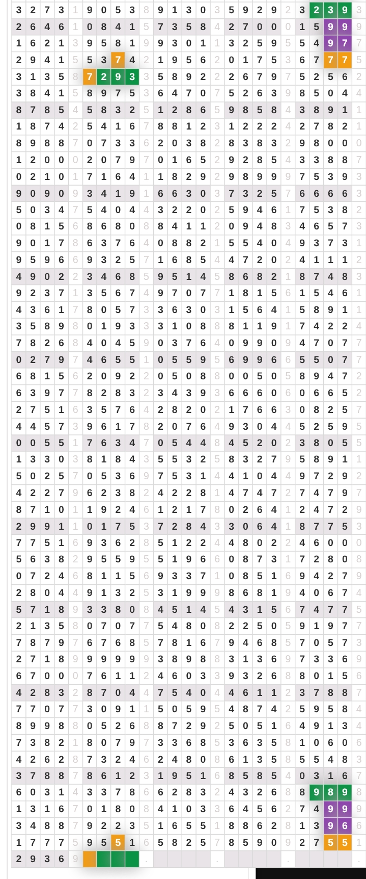 | Rumus Angka Mati berdasarkan kepala harian | 07 08 09 10 19 20 21 27 28 31 38 39 40 41 42 43 48 49 50 51 52 53 54 59 60 61 62 63 65 71 73 74 76 85 86 87 96 97 98 |