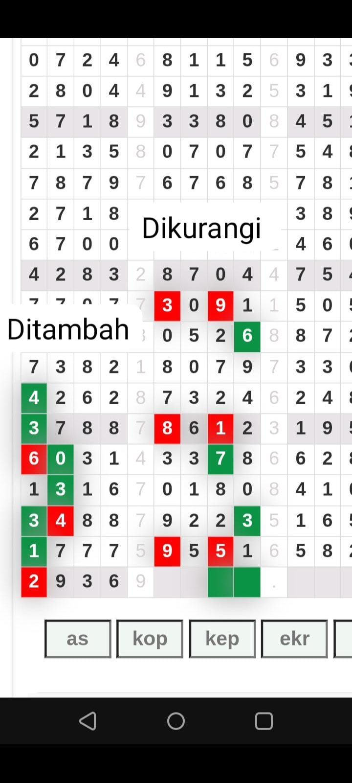 | Rumus Kontrol 4 berdasarkan kepala harian | 2345890 1236789 |