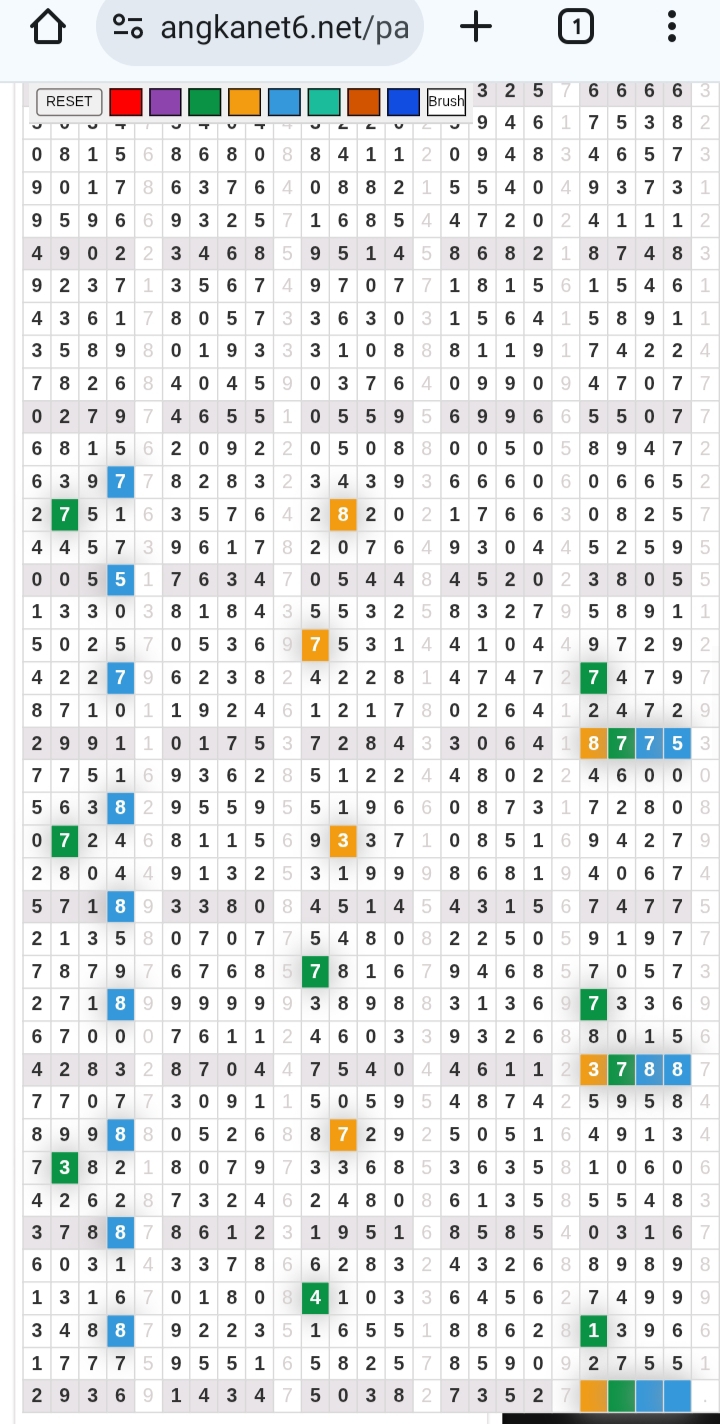 | Rumus Angka Mati berdasarkan kepala harian | 04 05 06 07 09 10 15 17 18 20 21 29 30 31 32 41 42 43 53 54 61 62 64 65 72 73 75 82 83 84 85 86 87 93 94 95 96 97 98 |