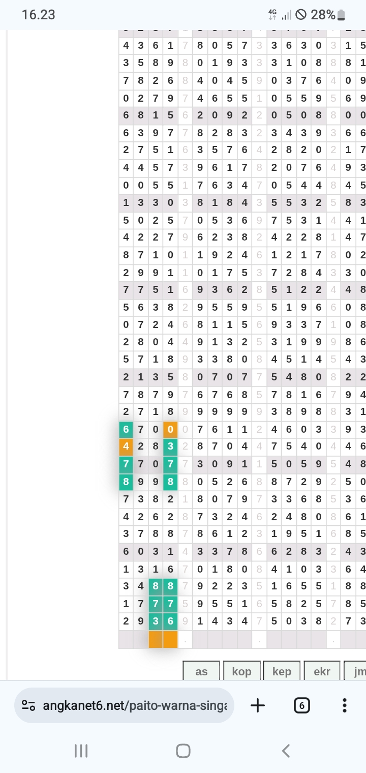 | Rumus Angka Mati berdasarkan kepala harian | 07 08 09 10 19 20 21 27 28 31 38 39 40 41 42 43 48 49 50 51 52 53 54 59 60 61 62 63 65 71 73 74 76 85 86 87 96 97 98 |