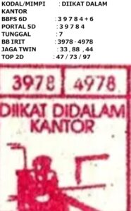 | Rumus Angka Mati berdasarkan kepala harian | 08 09 10 16 17 19 20 27 28 30 31 32 37 38 39 40 41 42 43 48 49 50 51 52 54 59 60 62 63 65 74 75 76 85 86 87 96 97 98 |