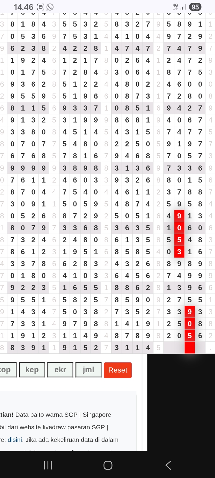 | Rumus Angka Mati berdasarkan kepala harian | 04 05 06 07 09 10 15 17 18 20 21 29 30 31 32 41 42 43 53 54 61 62 64 65 72 73 75 82 83 84 85 86 87 93 94 95 96 97 98 |