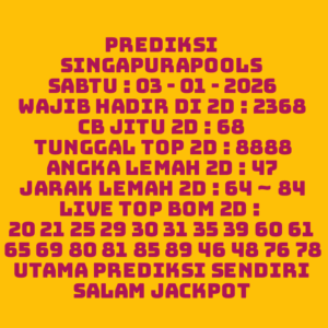 Prediksi Singapore Sabtu, 13-12-2025 Merupakan Prediksi Otomatis yang menggabungkan Metode Kalender Togel Dengan LN Generator yang akurasi prediksinya sudah kita ketahui bersama. Jadi harap Maklum Jika kadang meleset Prediksi Singapore kita. Jadikan ini sebagai perbandingan saja dan tetap Utamakan karya sendiri
