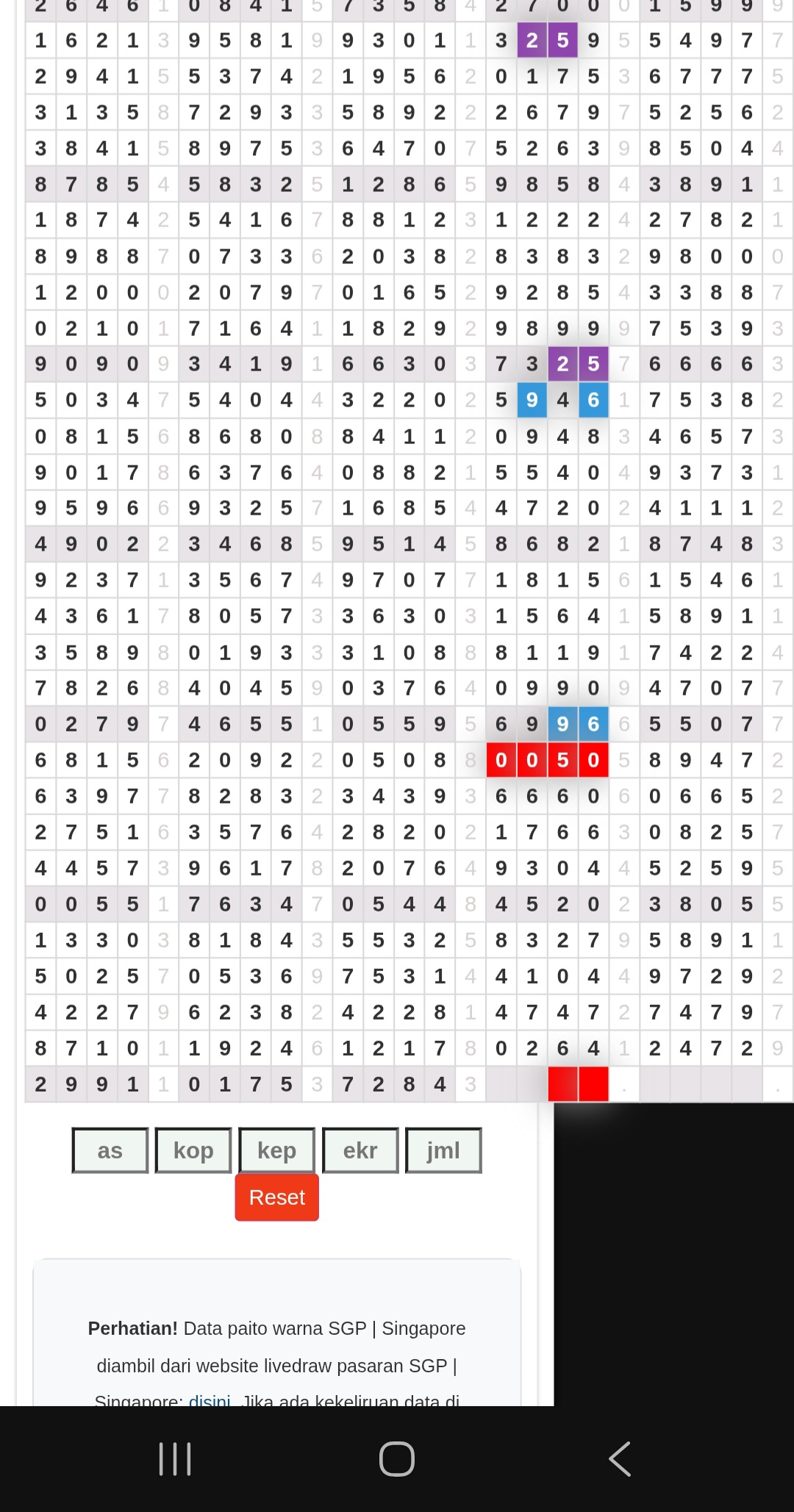 | Rumus Angka Mati berdasarkan kepala harian | 08 09 10 16 17 19 20 27 28 30 31 32 37 38 39 40 41 42 43 48 49 50 51 52 54 59 60 62 63 65 74 75 76 85 86 87 96 97 98 |