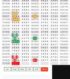 | Rumus Angka Mati berdasarkan kepala harian | 05 06 08 09 16 17 19 20 21 26 27 28 29 30 31 32 37 38 39 40 41 43 48 49 51 52 54 59 63 64 65 74 75 76 85 86 87 97 98 |