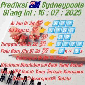 Prediksi Sydneypools Selasa, 13-01-2026 Merupakan Prediksi Otomatis yang menggabungkan Metode Kalender Togel Dengan LN Generator yang akurasi prediksinya sudah kita ketahui bersama. Jadi harap Maklum Jika kadang meleset Prediksi Sydneypools kita. Jadikan ini sebagai perbandingan saja dan tetap Utamakan karya sendiri