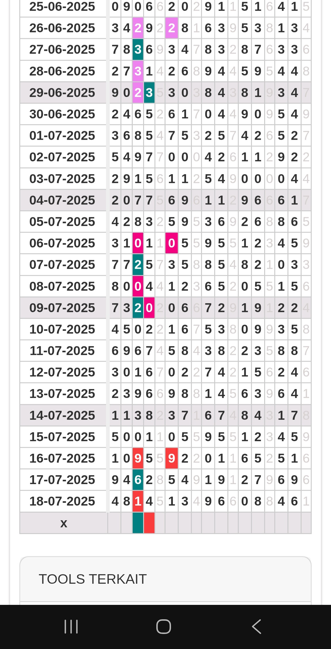 | Rumus Kontrol 4 berdasarkan kepala harian | 2345890 1236789 |